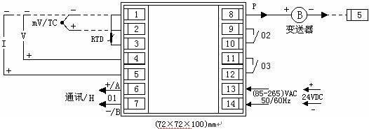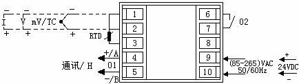 * 報警(O2),報警(O3)用戶可自行組態(tài)為上限報警或下限報警。