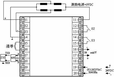 三、DY2000智能橋路輸入顯示控制儀表接線圖