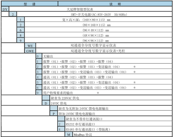 二、DY2000雙通道全分度信號數(shù)字/光柱顯示儀表型譜: