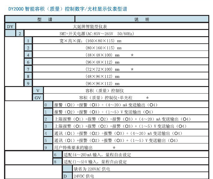 - 產(chǎn)品名稱:DY2000(V/GV)智能容積(質(zhì)量)控制數(shù)字/光柱顯示儀表