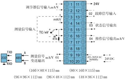 二、DY2000智能Q型操作器接線圖 * 雙光柱儀表僅有兩種外型尺寸:(160×80×115) mm和(80×160×115) mm
