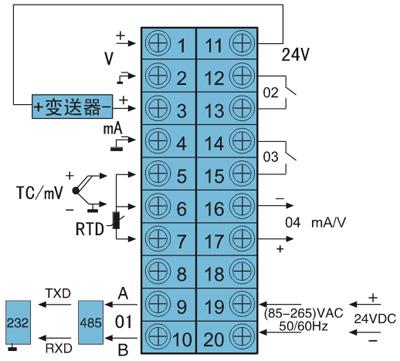 * 報警(O2),報警(O3)用戶可自行組態(tài)為上限報警或下限報警。