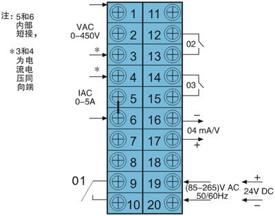 注: 信號(hào)輸入為電流時(shí),繼電器輸出為O1、O2;信號(hào)輸入為電壓時(shí),繼電器輸出為O1、O3