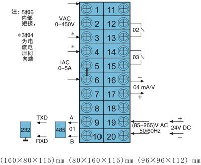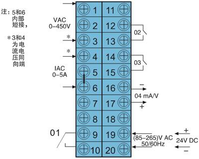 注:信號(hào)輸入為電流時(shí),繼電器輸出為O1、O2;信號(hào)輸入為電壓時(shí),繼電器輸出為O1、O3