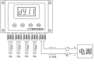 DYSN系列溫度遠傳監(jiān)測儀回路供電, 4路PT100溫度傳感器輸入一路輸出4~20mA的標準電流。儀表具有LED數(shù)字顯示,在無選擇時顯示最高溫度點的溫度值,需要時用戶可以通過面板上的按鍵或遠傳遙控電平,選擇查看任一測溫點的溫度值(鋁合金外殼)。