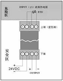 三、DYR系列卡裝熱電阻輸入隔離安全柵接線圖