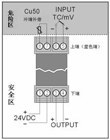 三、DYR系列卡裝熱電偶輸入隔離安全柵接線圖