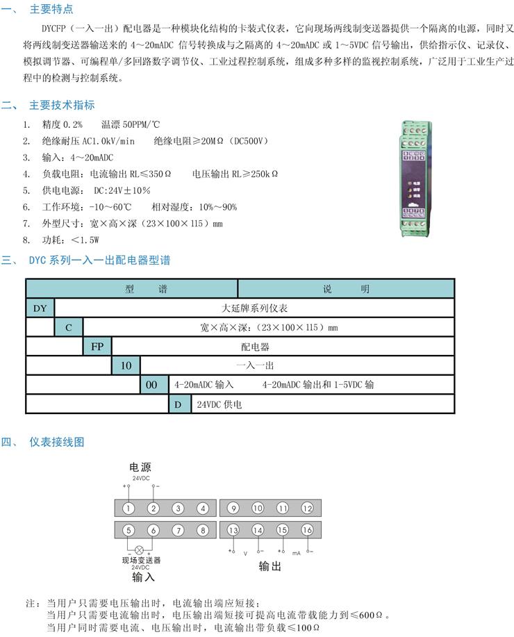 • 產(chǎn)品名稱:DYC(FP)系列卡裝一入一出配電器