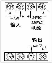 由220VAC或24VDC供電,將毫伏到幾百伏的直流電壓信號或毫安到5安