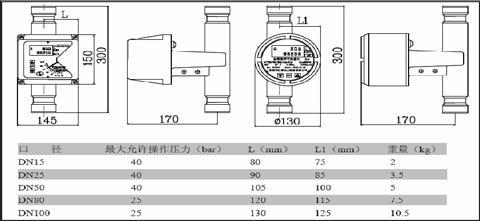 DYFT4螺紋下進(jìn)上出型外形尺寸及重量