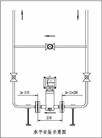 7) 安裝流量計(jì)的位置應(yīng)保證入口有≥5DN 的直管段,出口不≤250mm的直管段;如介質(zhì)中含有鐵磁***物質(zhì),應(yīng)在流量計(jì)前安裝磁***過(guò)濾器。