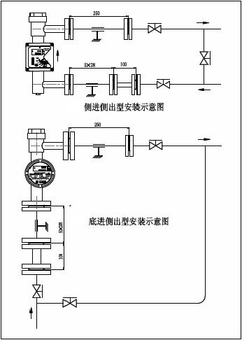 測(cè)控系統(tǒng)中的控制閥,應(yīng)安裝在流量計(jì)的下游。用于氣體測(cè)量時(shí),應(yīng)保證工作壓力不小于流量計(jì)壓損的倍,以使流量計(jì)穩(wěn)定工作。安裝流量計(jì)前,應(yīng)將管道內(nèi)焊渣吹掃干凈;安裝時(shí)要取出流量計(jì)中的止動(dòng)元件;安裝后使用時(shí),要緩慢開(kāi)啟控制閥門(mén),避免沖擊損壞流量計(jì)。對(duì)于標(biāo)準(zhǔn)型、水平安裝型金屬管浮子流量計(jì)可以選擇內(nèi)置磁過(guò)濾器。內(nèi)置磁過(guò)濾器的標(biāo)準(zhǔn)型的總高為。流量計(jì)安裝示意圖六、信號(hào)變送器—指示器