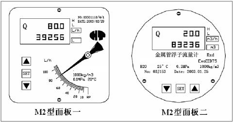 M2 型指示器的上述功能由安裝在外殼內(nèi)的磁傳感器、MCU 微處理器及相應(yīng)的功能電路所構(gòu)成的HTD 磁測(cè)變送器完成,該變送器有一個(gè)雙行八位LCD 液晶顯示屏,只須三鍵:INC---加鍵,用于參數(shù)的修改和選擇;SET---功能鍵,用于主菜單的循環(huán)顯示和參數(shù)設(shè)定值的確認(rèn);DEC---減鍵,用于參數(shù)的修改和子菜單的進(jìn)入,即可完******機(jī)對(duì)話(huà)。在儀表口徑所允許的測(cè)量范圍內(nèi),用戶(hù)可現(xiàn)場(chǎng)根據(jù)工藝參數(shù)的變化,進(jìn)行現(xiàn)場(chǎng)標(biāo)定。M2 型指示器面板圖如下,隨版本更新面板將有所不同,屆時(shí)產(chǎn)品面板以實(shí)物為準(zhǔn)。