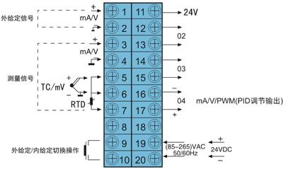 三、DY2000外給定PID調(diào)節(jié)/光柱顯示儀表接線圖