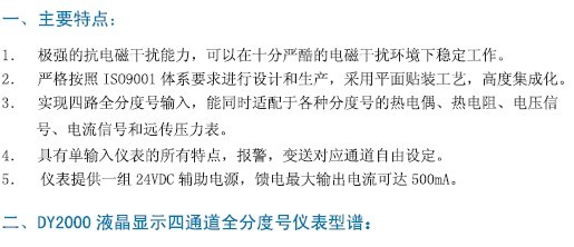 • 產(chǎn)品名稱:DY2000(FEL)液晶顯示四通道全分度號儀表