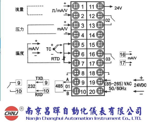 通訊/打?。?font face="Times New Roman">O1)+控制輸出(O2)+(1~5)V變送輸出(O3) |