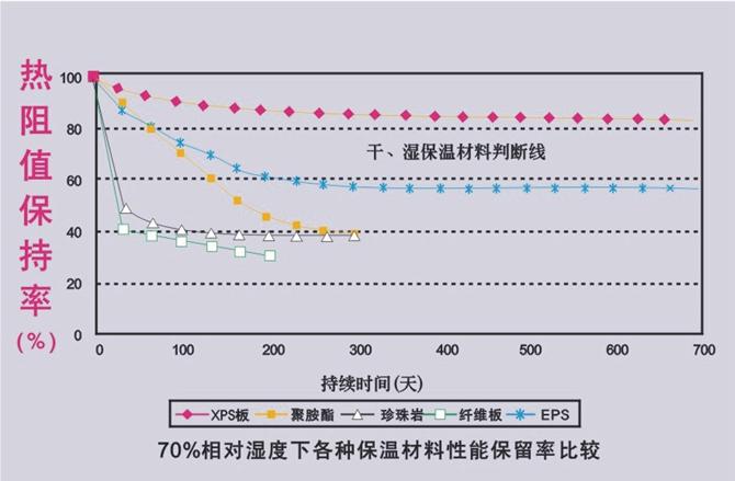 科文擠塑板(XPS)比其它保溫材料具有更加出色的保溫隔熱性能和更長的持久性能,其絕熱性能在50年后仍能保持原來的80%以上。