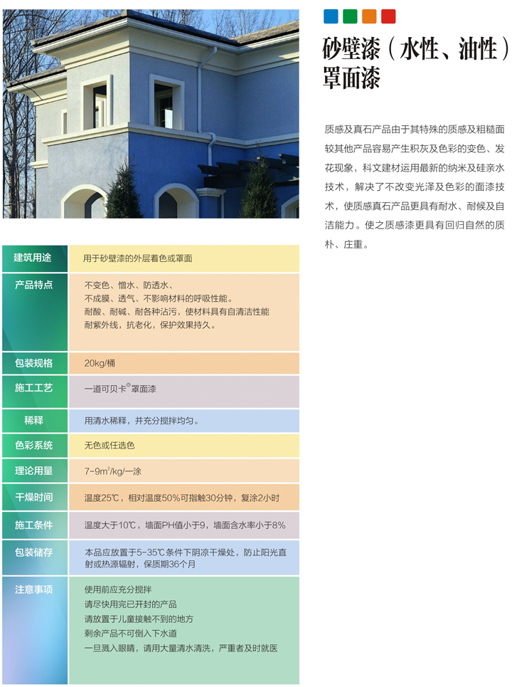 砂壁漆(水性、油性)罩面漆